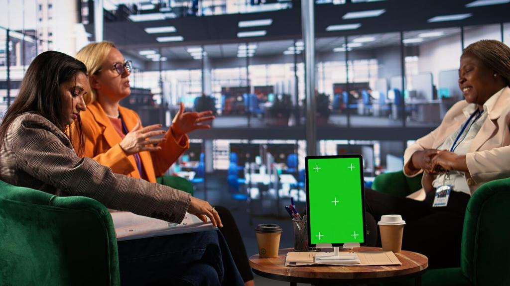 Stand-ups de quince minutos, demos quincenales y retrospectivas breves crean cadencia y transparencia. Celebra pequeños logros en público para reforzar identidad. Si nunca hiciste una demo, empieza con un prototipo simple. ¿Te enviamos una agenda sugerida para tus rituales? Comenta “rituales” y te ayudamos.